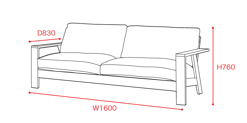 - 2Pソファ:W1600 × D830 × H760 SD510 (AH530,SH400)