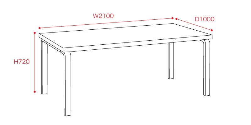 アルヴァ・アアルトのデザインによる長方形テーブルは、豊富なサイズや仕様を誇り、そのどれもが空間に馴染むさりげなくも優しいデザイン。